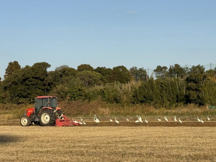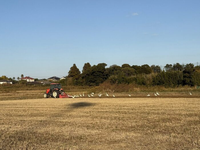 近くの田んぼでは、いつもになく早めの耕しが始まっていました。