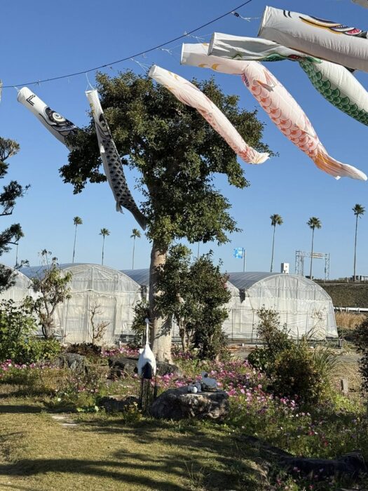 今年も青島太平洋マラソンの応援に川越社長が鯉のぼりを揚げました。